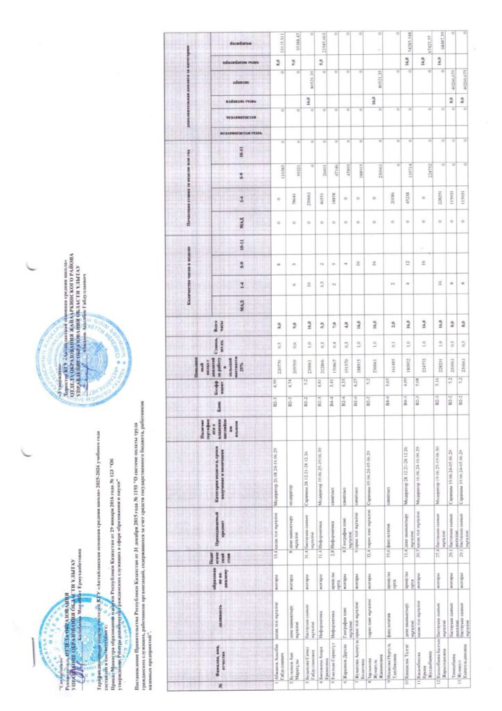Штаттық кесте 2025-2026 оқу жылы 02.09.2025 жыл